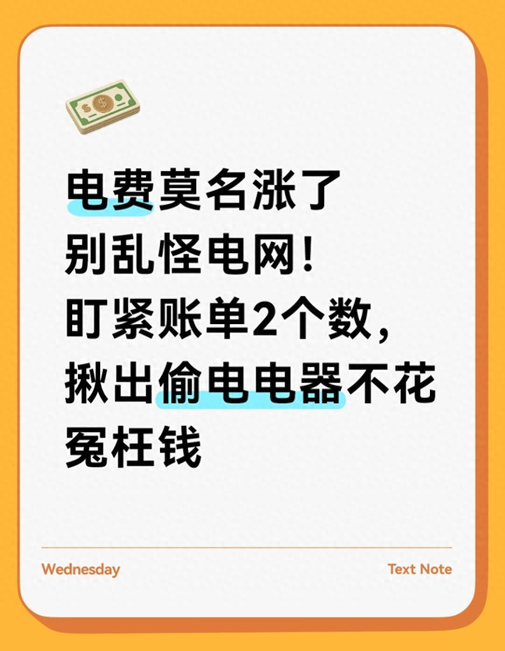 其实电费上下,一看账单便知眉目,中枢盯紧两个主义就能判断是否平素;而家里的“偷电大户”,也不是大功率电器专属,许多不起眼的小电器待机耗电才最吓东谈主。今天就用大口语把电费账单的要津主义讲透,再揪落发里的隐形偷电电器,教你省电时间,每月放纵省几十上百元电费。