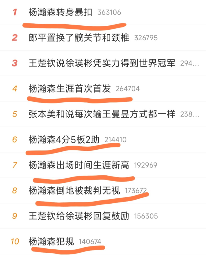 其时热搜的排名榜,前11个热搜里有7个词条是对于杨瀚森的,何况仍是很长技巧占据了热搜榜的榜首位置,小杨的东说念主气全王人是中国篮球融会员里最顶级的。热搜榜第一位的词条是杨瀚森回身暴扣,这粒进球,是小杨NBA糊口最精彩的进球,致使莫得之一。天然斥地者输球了,但杨瀚森的弘扬弥漫给球迷带来惊喜。
