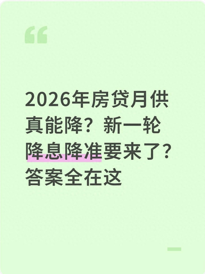 最近洞开手机刷新闻、刷短视频,总能看到“2026年房贷要降”“新一轮降息降准要来了”的音讯,身边有房贷的一又友也总在聊这事。毕竟当今不少家庭皆背着几十万致使上百万的房贷,每个月的月供但是固定开支,能少交少量,生涯压力就能实真实在轻一截。