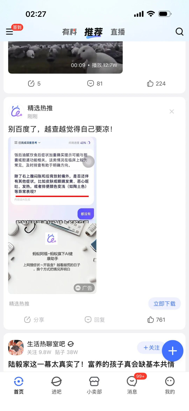 由于新技巧迟迟难以达成营业化,为了稳住事迹,百度愈发依赖传统产物。比如,近日有网友爆料称,百度贴吧确凿涌现了一则蚂蚁阿福投放的骑脸输出告白,告白语为“别百度了,越查越以为我方要凉!”