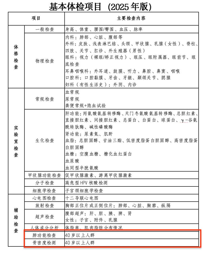 别慌,国度卫健委不久前发布了《成东谈主健康体检步地推选诱骗(2025年版)》,明确推选了40岁以上必作念的两项查验。这两项即是——肺功能查验、骨密度查验。