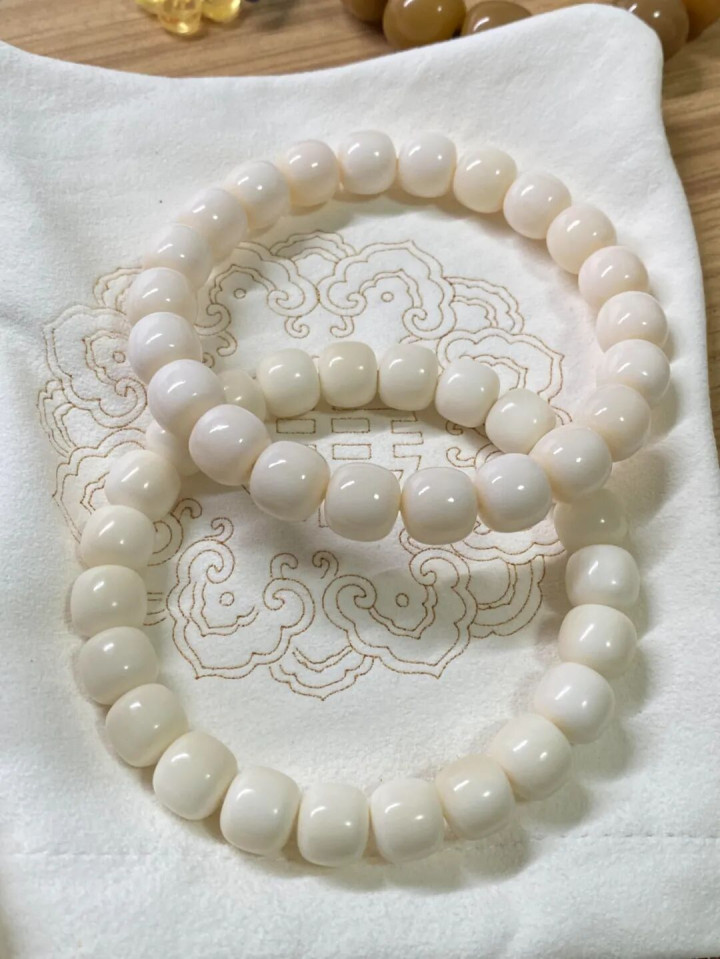 比平常菩提根更白、更硬,摸着冰凉,夏天戴相配安祥。