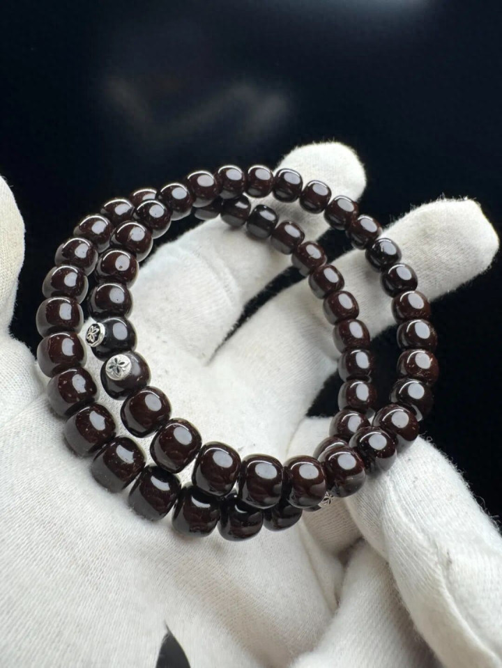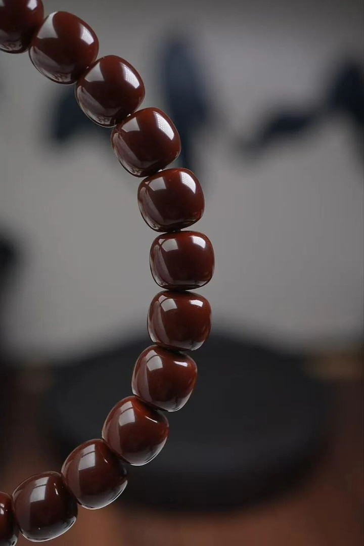 情态纯黑,戴手上千里甸甸的,越盘越油亮,终末酿成深巧克力色,看着就稳。